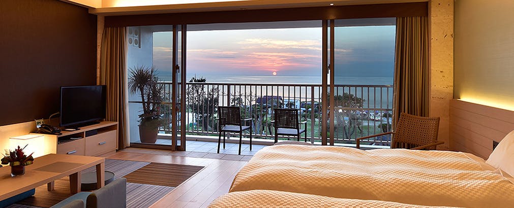 客室は、最も海に近い場所に建つ「とぅもーる館」のスタンダードタイプのツインルームや、部屋の窓からはオーシャンビューの景色が広がる「てぃーだ館」のスーペリアイアイプとデラックスタイプ、海岸の林の中にあるポリネシア風かやぶきヴィラがならぶかびらビレッジのコーテージタイプのお部屋とリゾート気分を満喫できる様々なタイプのお部屋が揃っています。