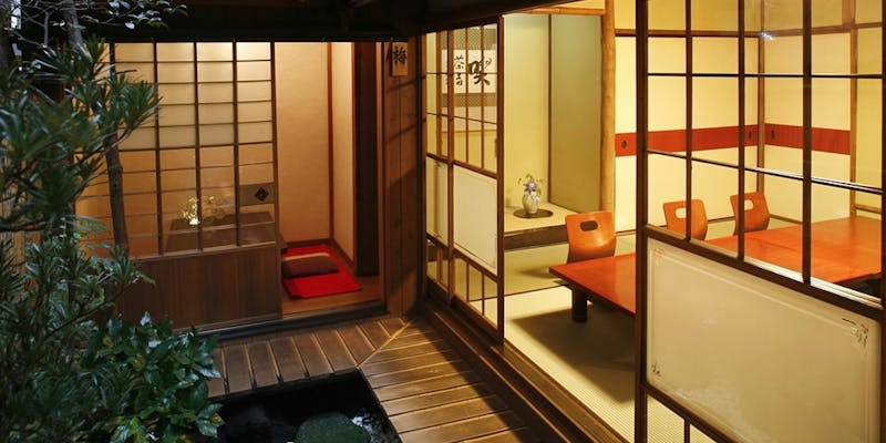 「よし梅 芳町亭」の店内は、2名から利用できる個室が用意され、掘りごたつやテーブルの席もあり、特に海外のお客様の接待の際には喜ばれています。また、5名から利用できる中庭が見える個室もあります。